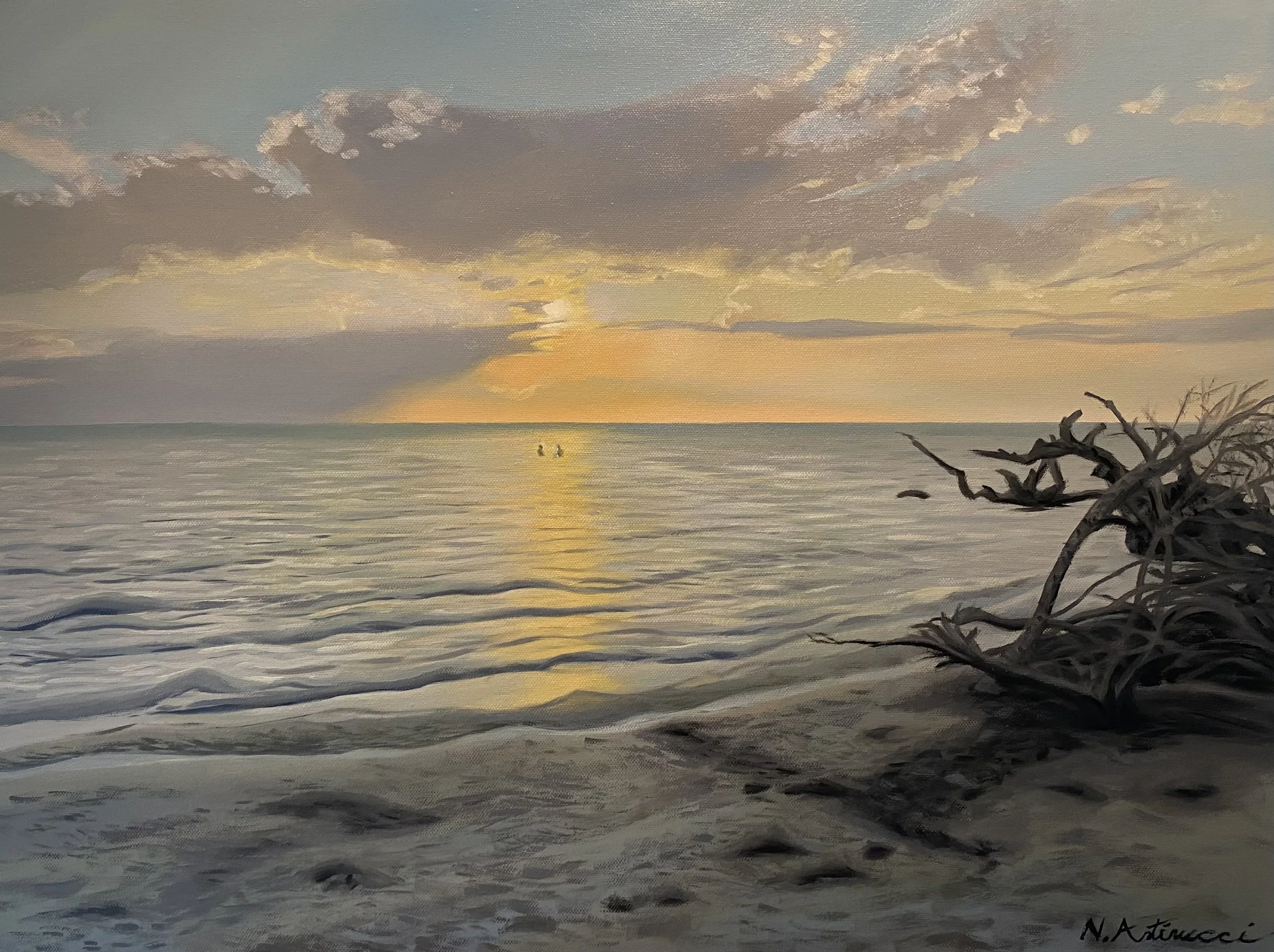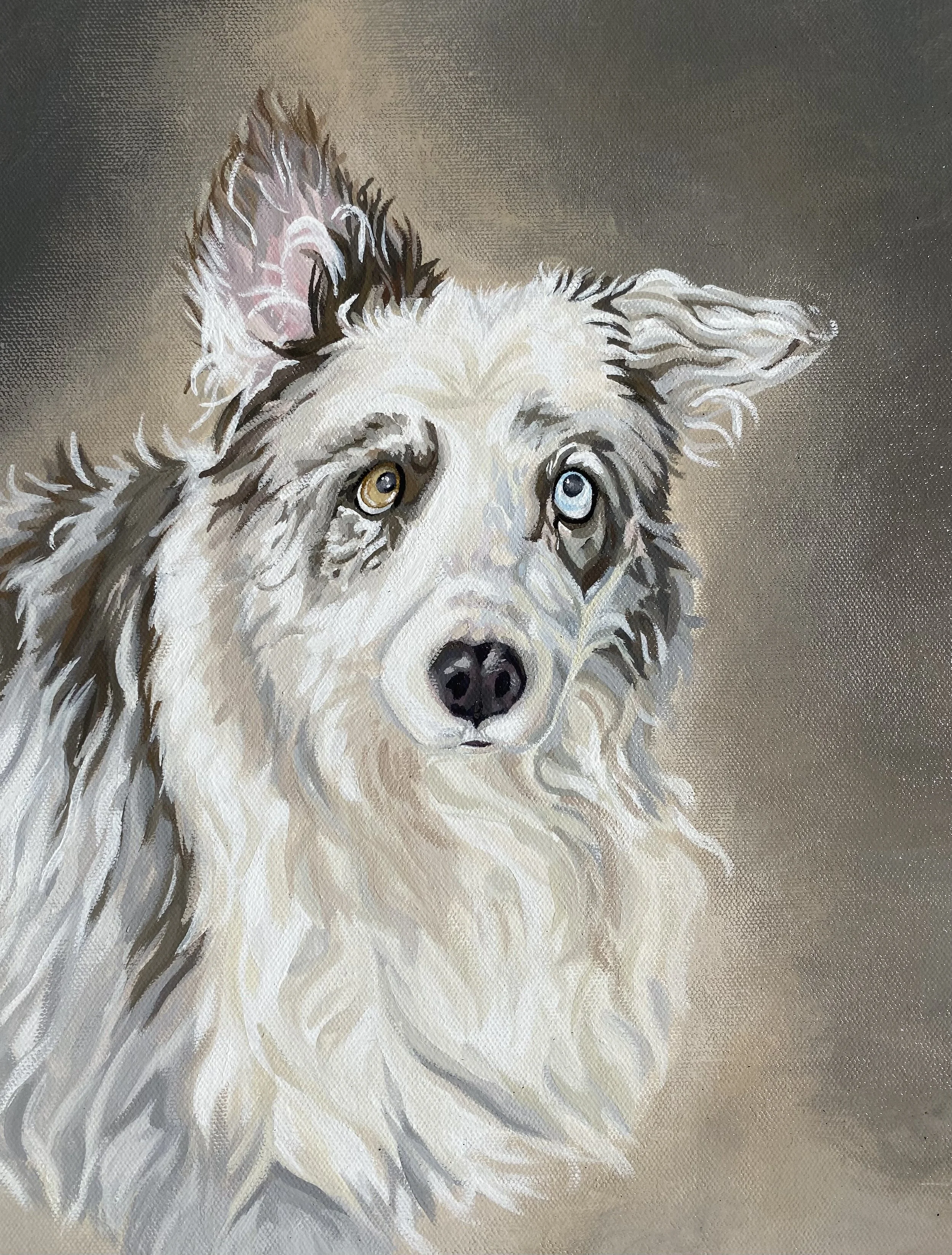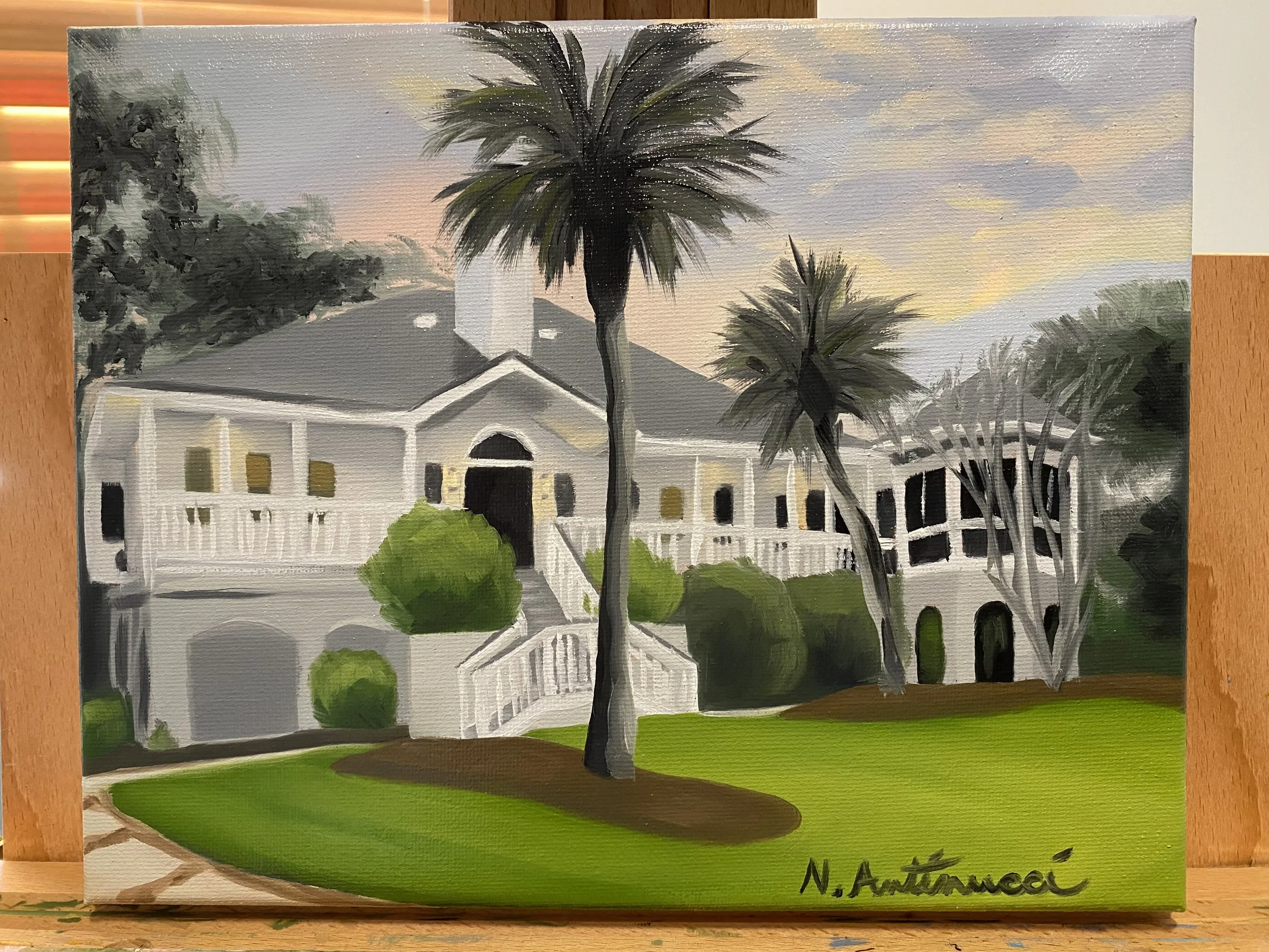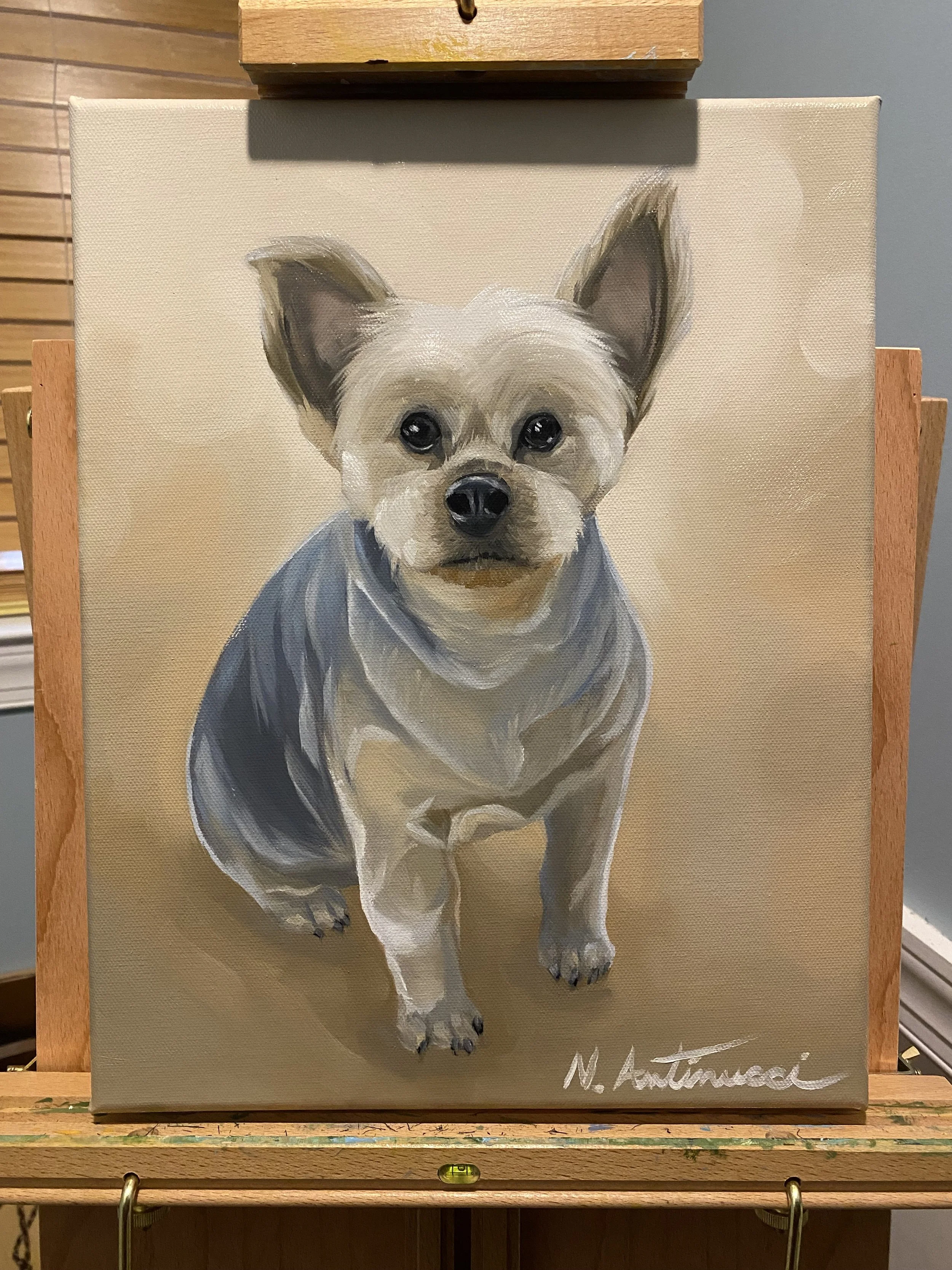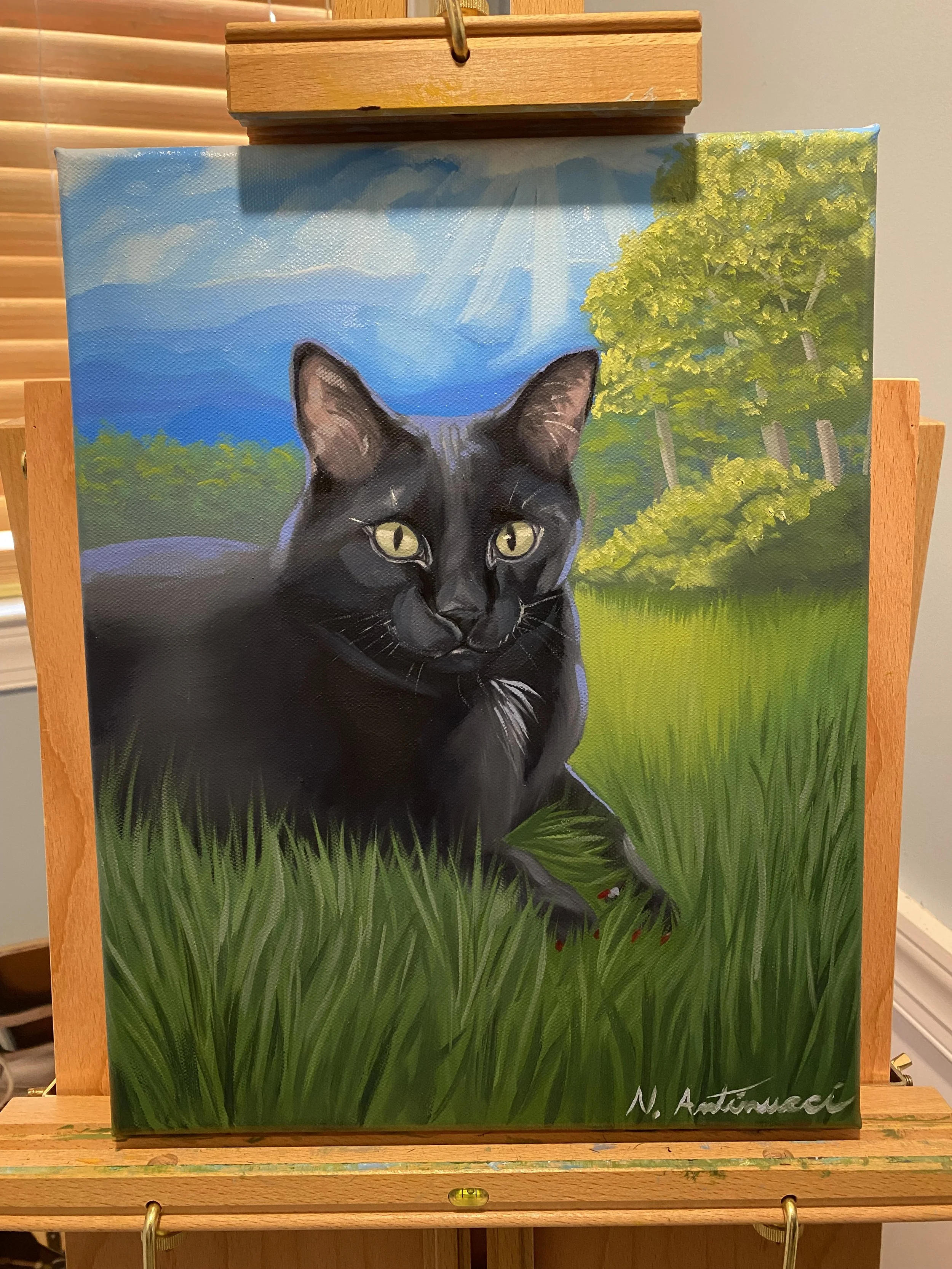 After I receive approval of the sketch I will start the painting. It usually takes me a week to two weeks or sometimes more to finish the painting, depending on the size. I always paint the sides of the canvas afterwards which may take a few more days for that to also dry, then I will varnish it.